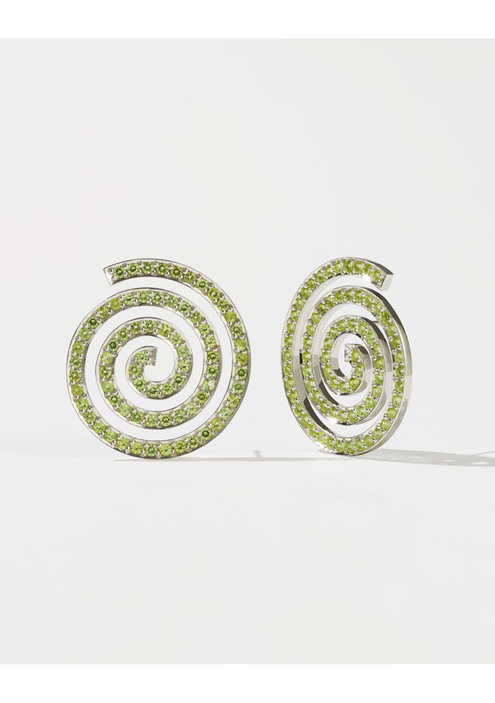 Meadowlark - Spiral Earrings Large Pave Gold Plated - Peridot Cubic Zirconia