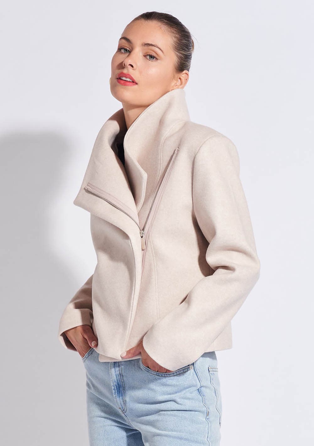 The So Close Jacket by Fate + Becker is a gorgeous new fashion piece for your winter wardrobe. Featuring a biker style with zip through closure and pockets, it feels so soft and go beautifully over dresses and denim with heels