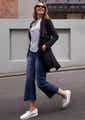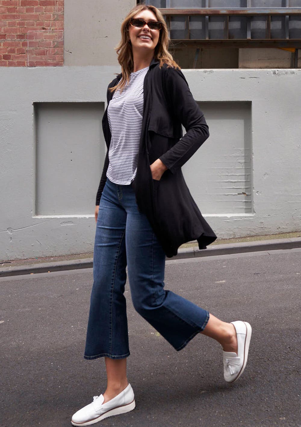 The essential Cardigan is here from Betty Basics! The Porter Ponte Cardigan features an open collar. Waterfall design lapelle. Long sleeves. Soft Ponte fabric with a touch of stretch. Pop it over any outfit to elevate your look. Relaxed fit on body.