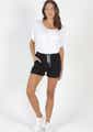 Need shorts? Show off those lovely legs in the Byron short by Betty Basics. These Black shorts feature an elastic waistband with drawstring, side pockets, mid waist and loose fit. Pair them back with any of the matching Betty Basics tees in Black. Fabric: Cotton / Polyester / Elastane Care instructions: Cold gentle machine wash with like colours Wash inside out Do not soak, bleach or rub Do not tumble dry Dry in Shade Warm Iron