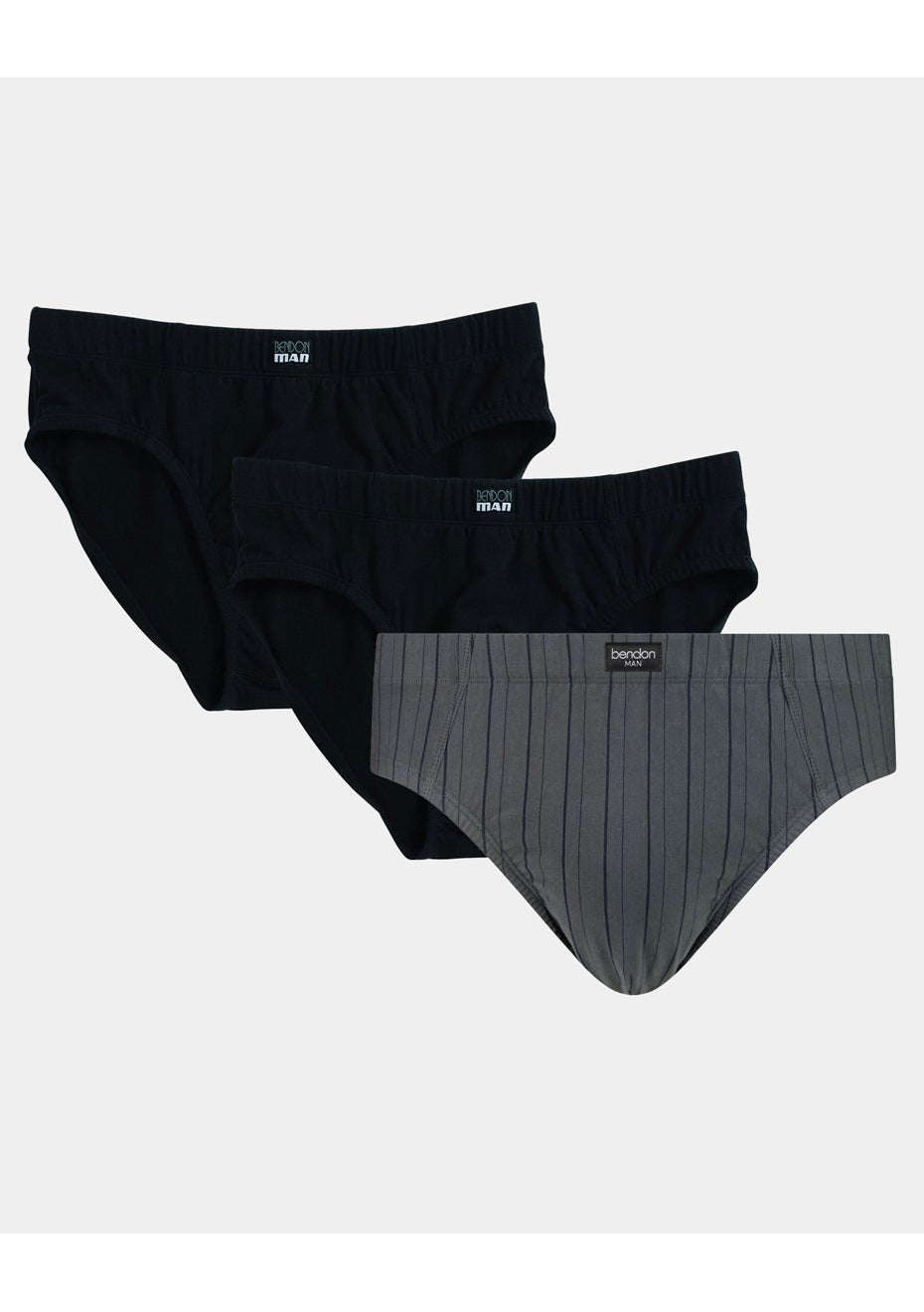Bendon Man - Cotton Stretch Three Pack Mens Brief 3 Pack - Black/Char Black