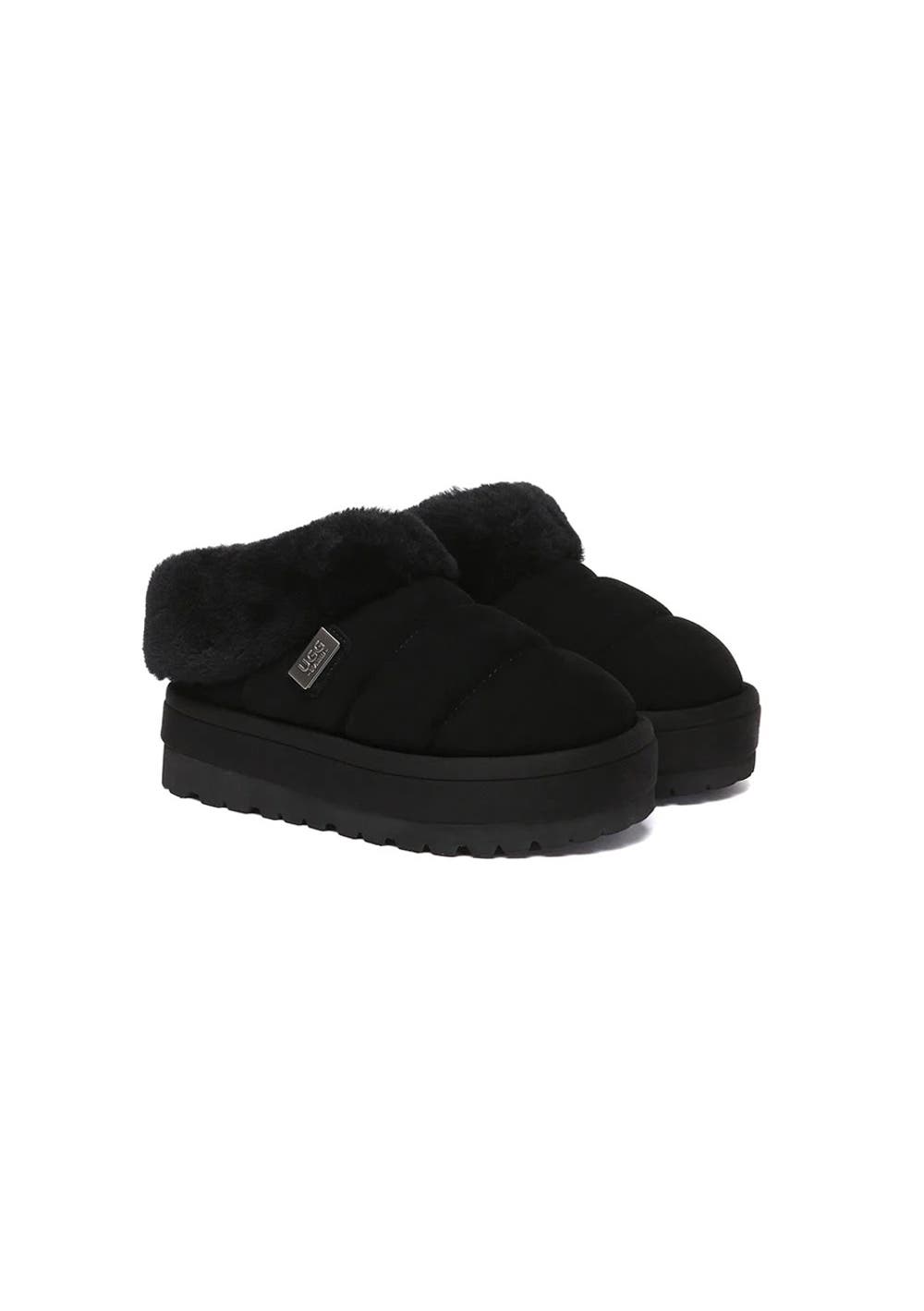 Elevate your slipper game with a pair of the EVERAU Ulrika Platform Ugg Slippers! Featuring a fluffy collar design made of sheepskin wool on the exterior, these shoes offer a playful twist to our classic slipper silhouette. Available in three neutral colourways and made with a platformed sole, these slippers will instantly elevate any look! Specification: Brand: UGG EVERAU The shoe upper is made with sheepskin, helping you to effortlessly maintain your boots. The fluffy sheepskin wool embraces your feet in absolute warmth during the icy-cold winter. These ugg slippers are fully lined with sheepskin wool that is super comfy and soft. The EVA sole has an excellent performance in terms of durability and lightweight. Our mini boots have strong sculptures that ensure adherence on slippery floors. The ankle design makes it easy for you to slipper on and off your shoes. The wool collar make it both stylish and warm. The classic design and solid colors always your great choice to fit your wardrobe. These slippers are available for both indoor and outdoor during cozy winter. Great gift idea for friends and family. Upper: Sheepskin Lining: Sheepskin Wool Sole: EVA Insole: Sheepskin Wool Platform Heights: Approximately 5cm