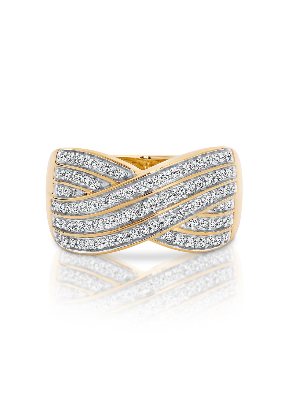 9ct Yellow Gold Diamonds Cross Over Dress Ring 1/2ct TW
