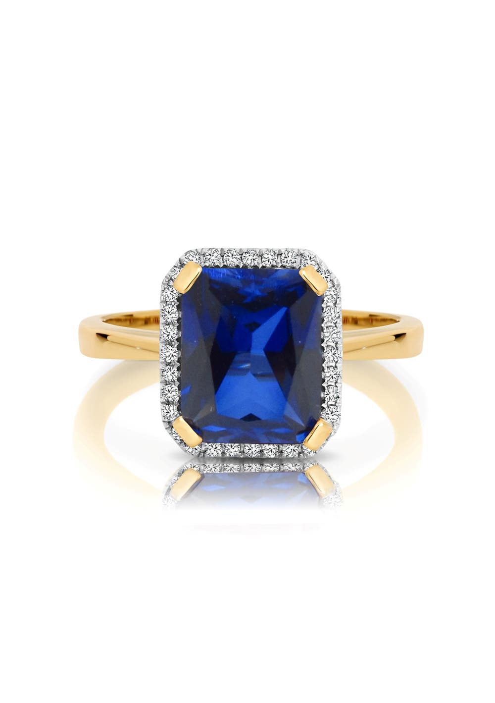 9ct Yellow Gold Diamond & Synthetic Sapphire Square Halo