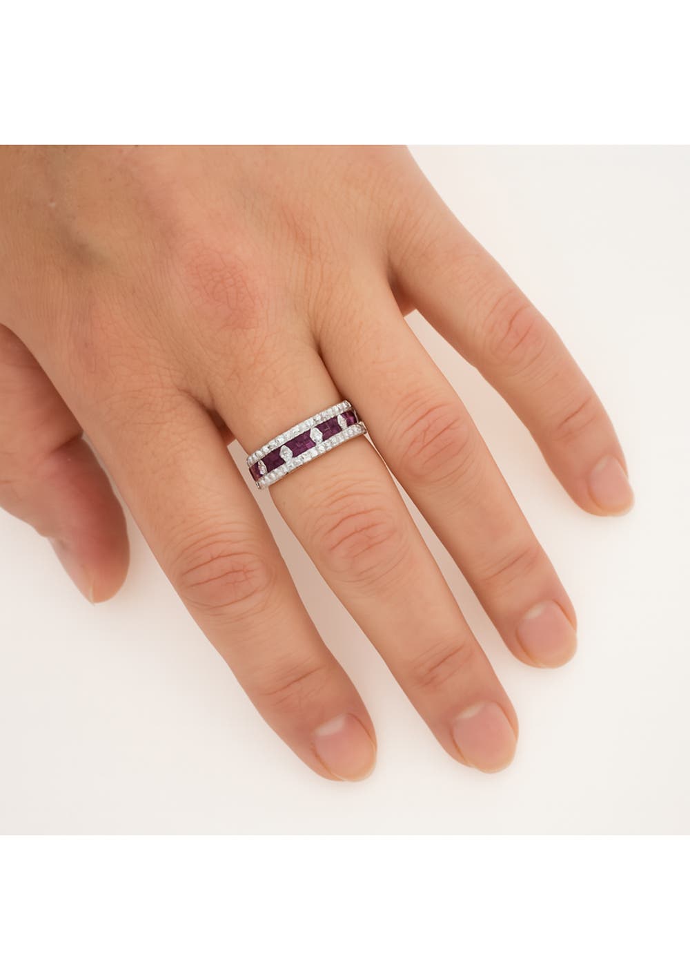 14ct White Gold Natural Ruby & Diamond Dress Ring – Size M