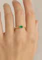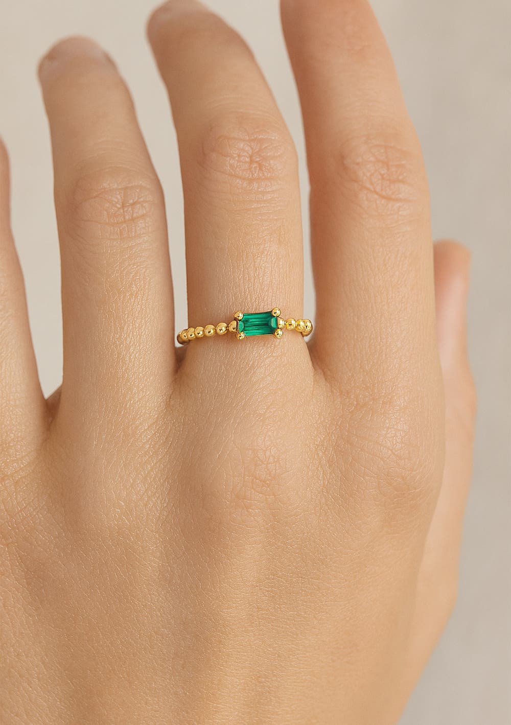 Dainty Gold Baguette Ring with Green Cubic Zircona