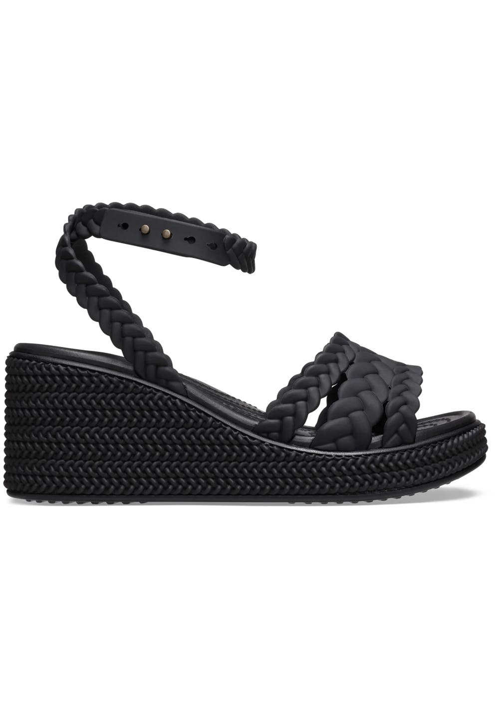 Crocs - Brooklyn Woven Ankle Strap Wedge - Black/Black