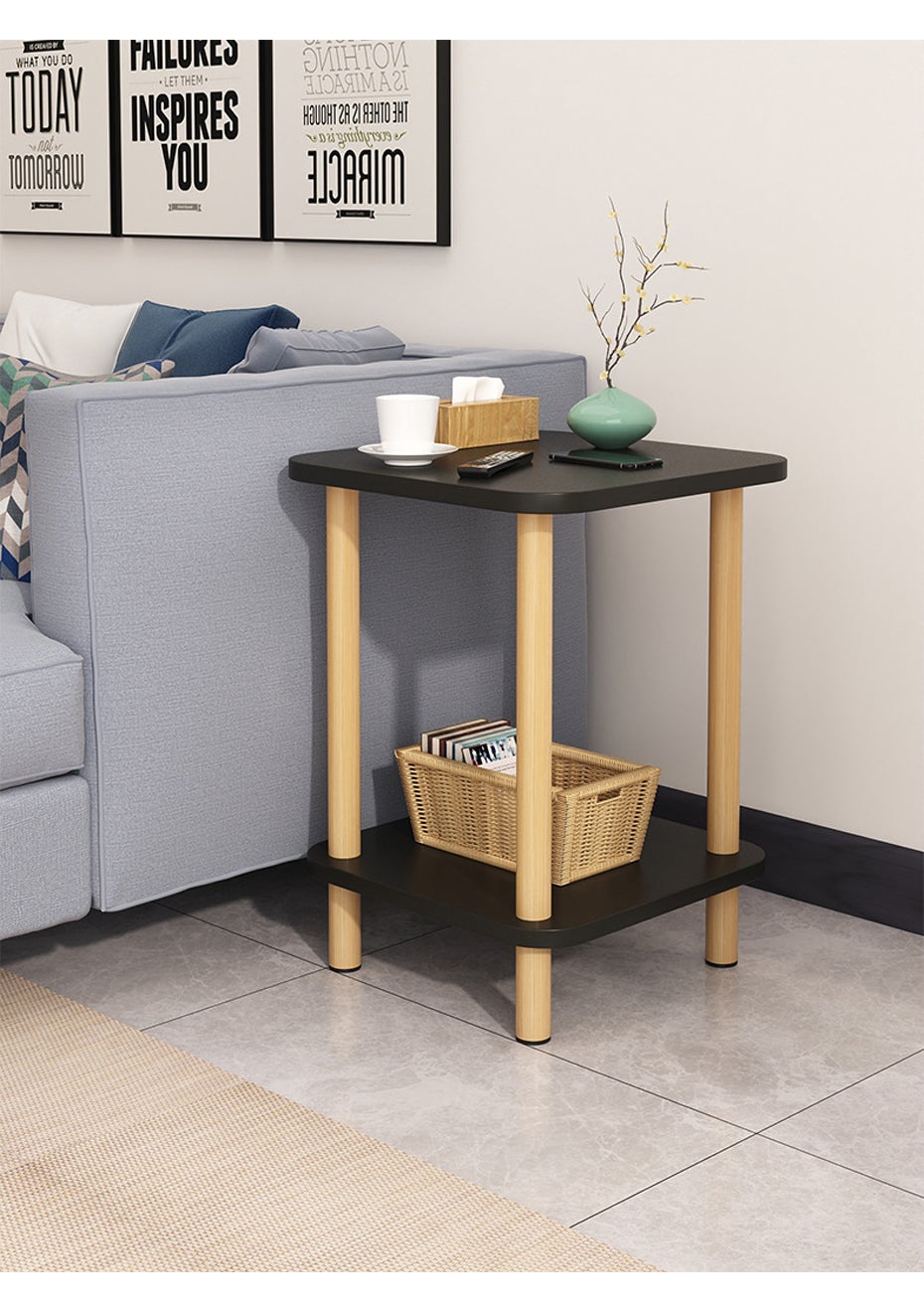 2-Tier Tall Square Wooden Side Table Bedside Table-Black