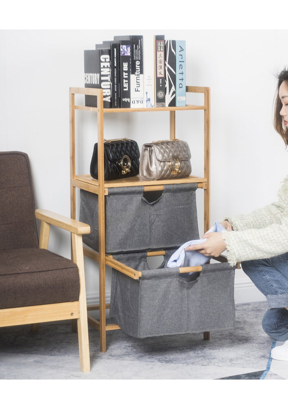 KEY FEATURES:  Multi-functional bamboo storage rack, large capacity, divided into grid storage, easy to store  The box fabric is made of cationic material, soft and breathable, wear-resistant and durable, showing the texture  The bamboo frame with clear texture is fresh and beautiful  The whole rack is finely polished to protect your safety in all directions. The corners are smooth and will not scratch your hands  2 drawers is enough big to storage clothes, towels, toys, etc..  It can be used as bookcase, display shelf, laundry rack.  Package Include:  1 x Natural Bamboo Multifunctional Drawer Basket Rack  1 x Screw Set  1 x Manual