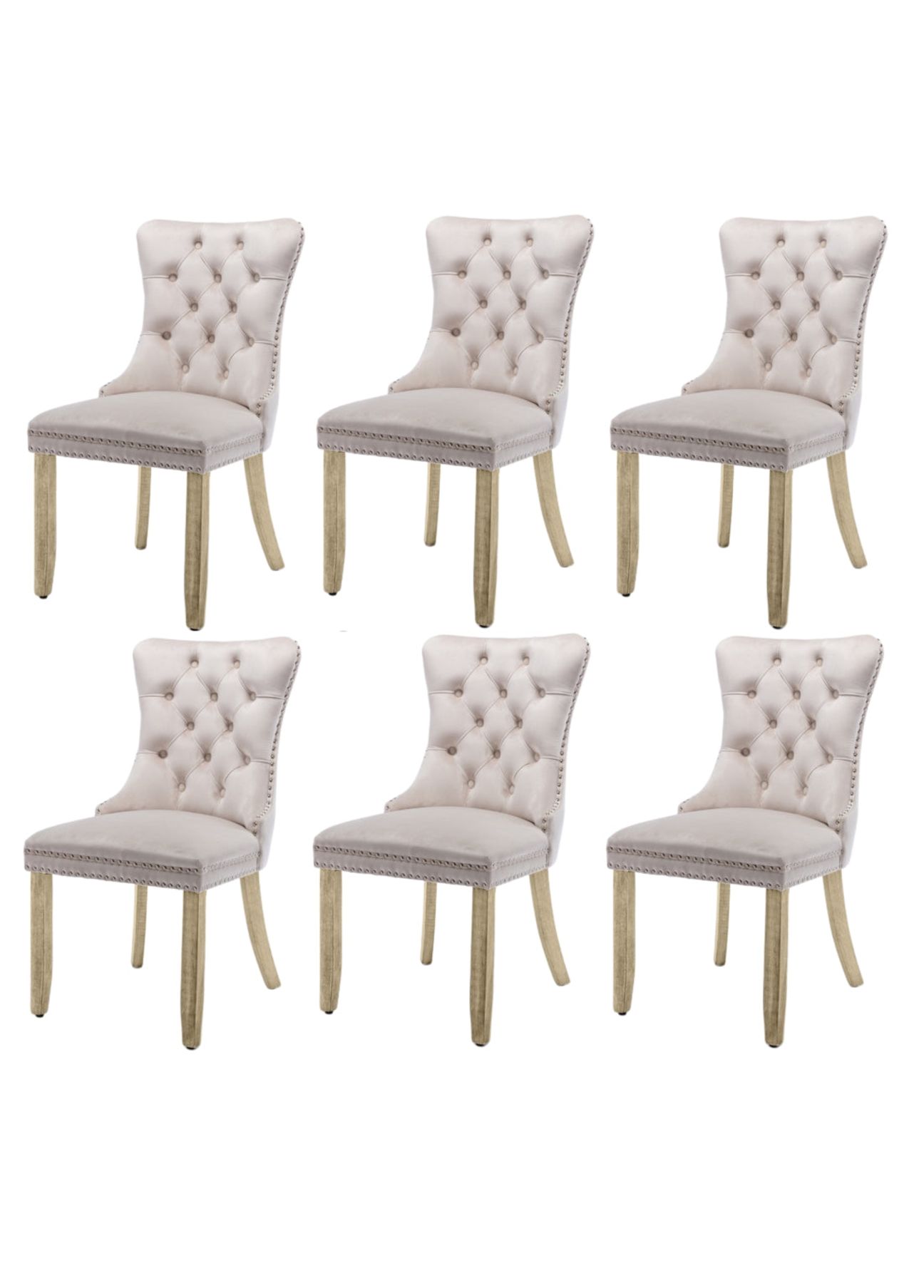 Hod Health & Home 6X Velvet Upholstered Tufted Kithcen With Solid Wood Legs Stud Trim And Ring Beige Dining Chairs