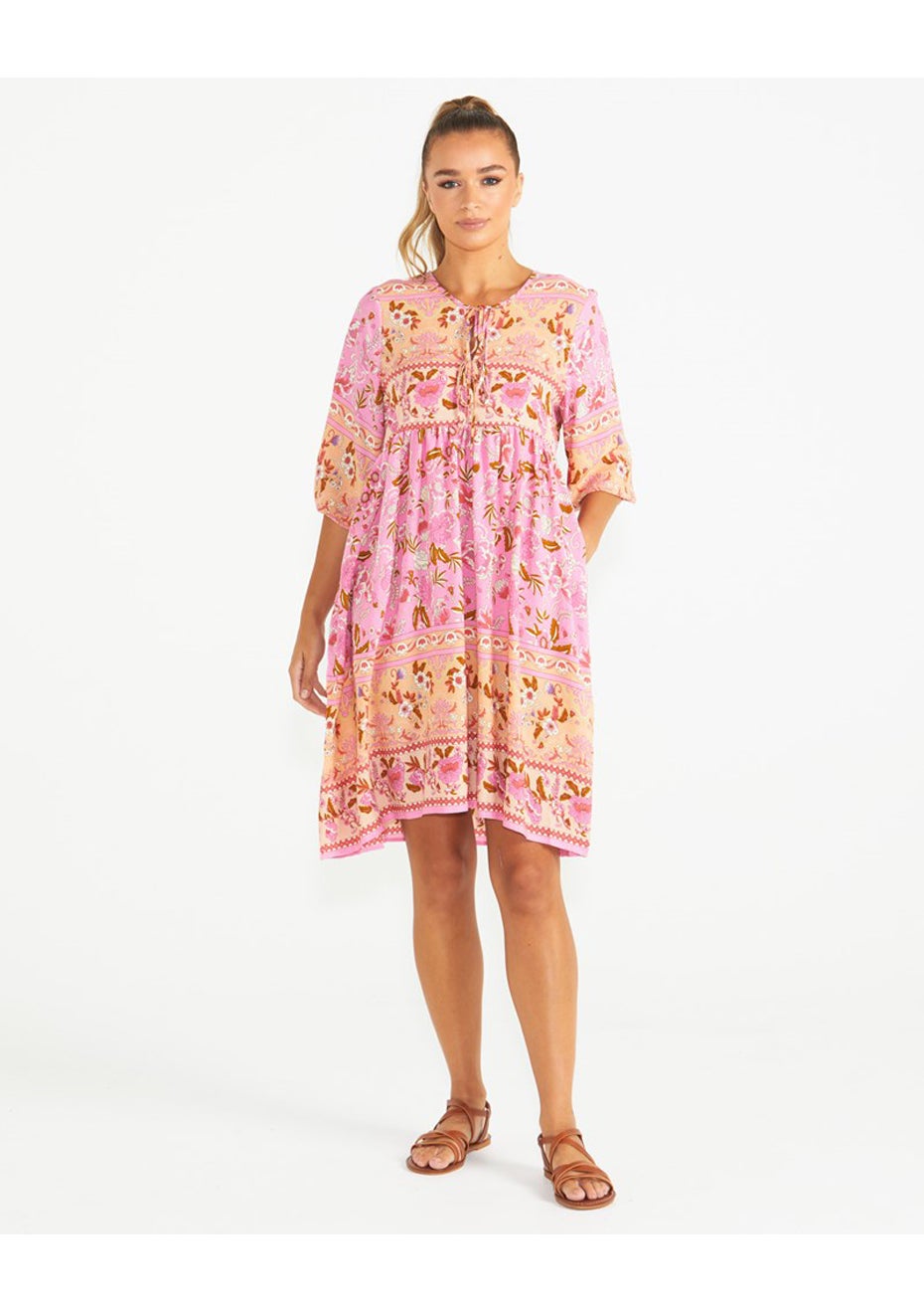 The Chiara Dress features a tiered skirt and a keyhole neck tie, offering a relaxed, elevated look perfect for springtime. Made from soft drapey fabric, it's an ideal choice for comfortable everyday wear. -3/4 sleeve with elasticated cuff -Key hole with neck tie detail -Tiered skirt -Soft drapey fabric Fabric and Care 100% Viscose Cool Gentle Machine Wash. Dry Cleanable