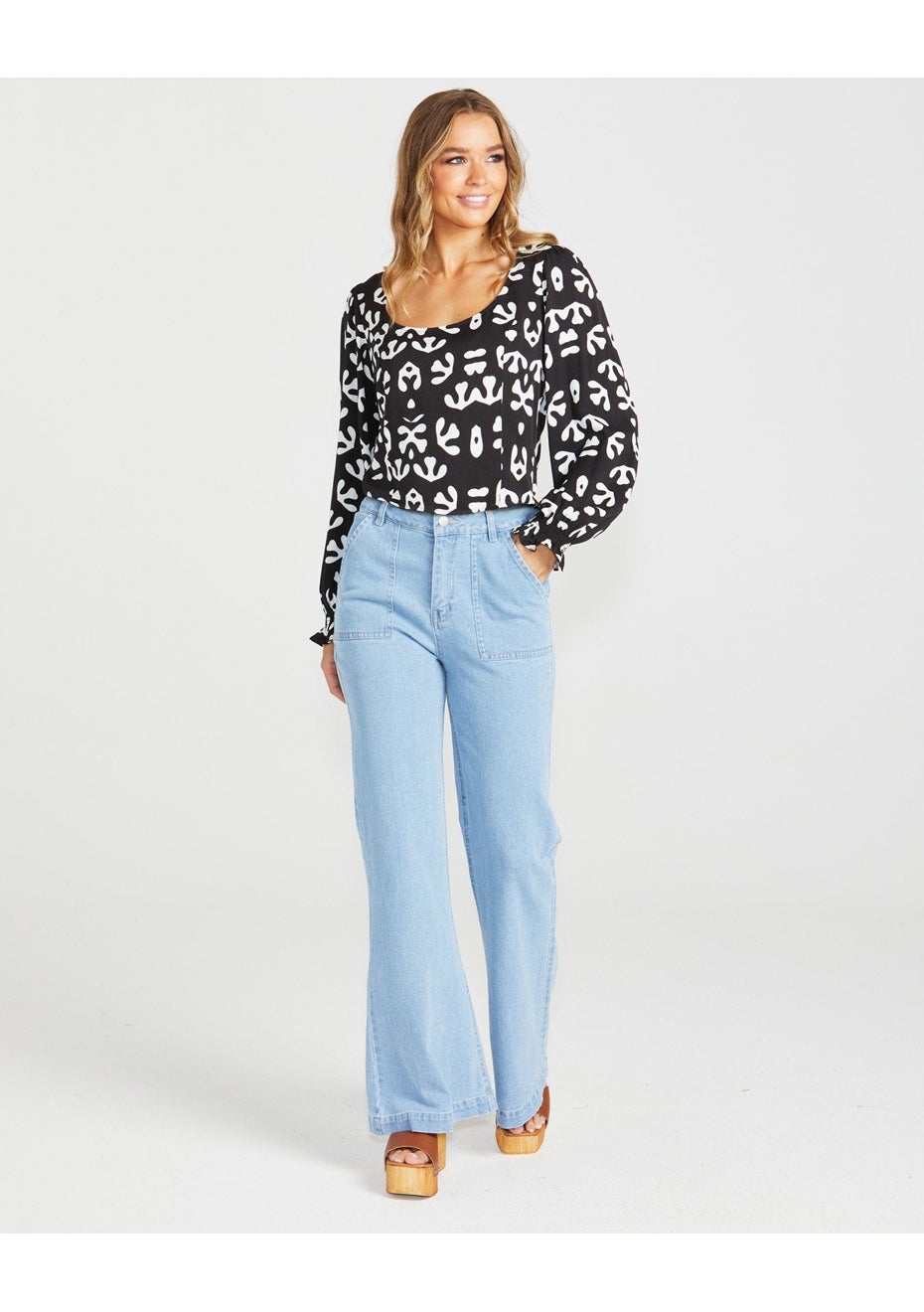 Embrace a blend of retro charm and contemporary style with the Danika Wide Leg Jeans in by Sass Clothing. These high-rise jeans feature a flattering wide-leg cut that elongates the legs, providing a chic and comfortable fit. The light denim wash offers a soft, lived-in feel, making these jeans an effortless addition to your casual wardrobe. With front and back patch pockets, they add a touch of utility to the timeless denim look. Pair these jeans with a tucked-in blouse and platform sandals for a throwback to the '70s, or keep it modern with a fitted tee and sneakers for an everyday casual ensemble. The versatility of the Danika Wide Leg Jeans allows you to create a variety of stylish outfits with ease.
