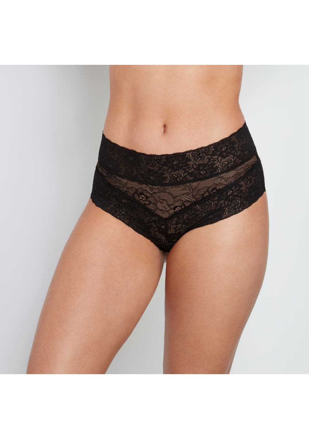 Flattering, full coverage high Rise silhouette. Soft and stretchy floral lace. 100% Cotton gusset for maximum breathability and comfort.
