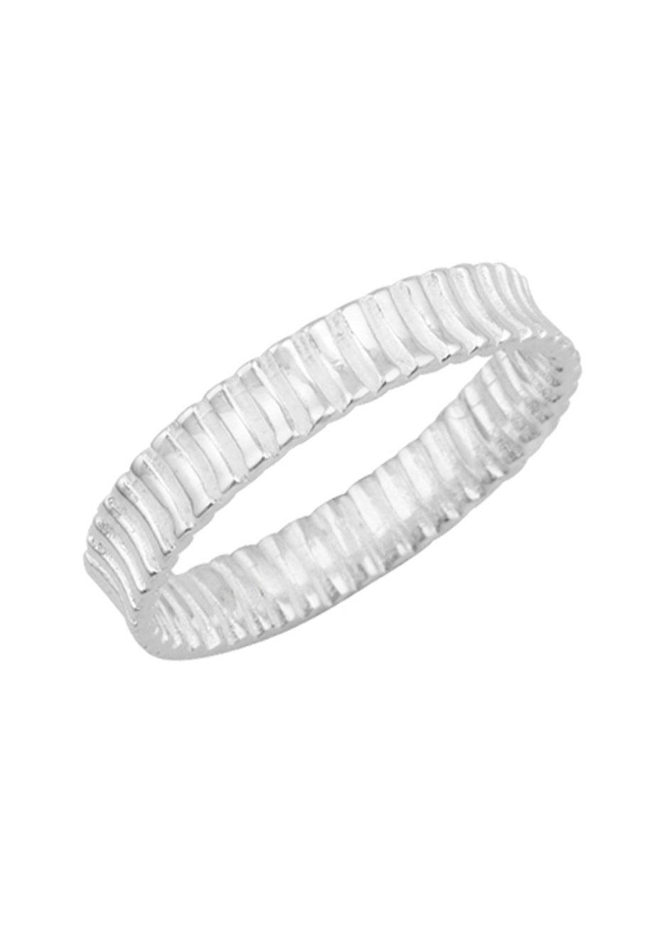 This elegant ring is on trend and has a fancy ribbed effect. A versatile piece to mix and match. Crafted in genuine sterling silver, it is a must have. Comes with an Curated Fine gift pouch