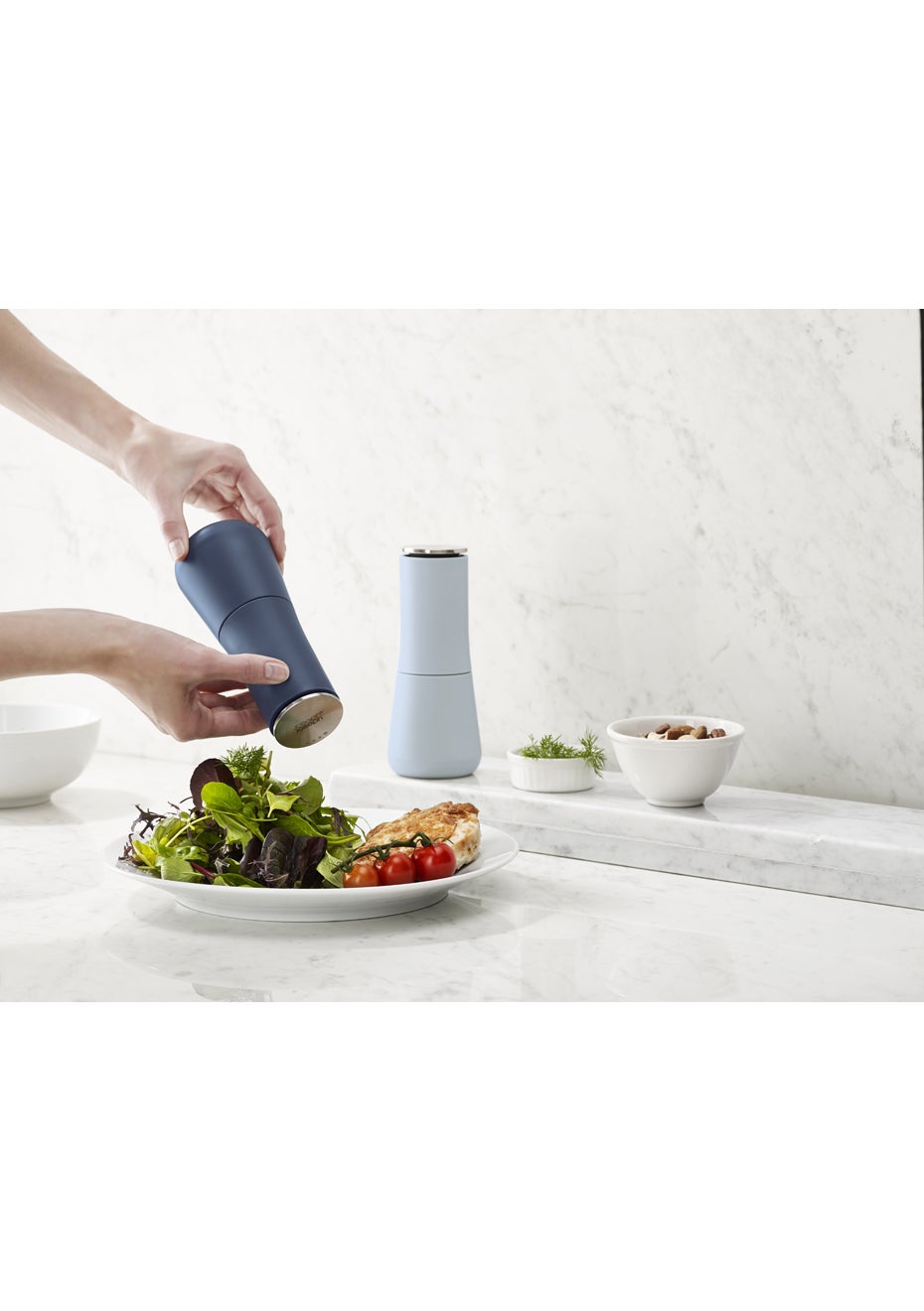 The Joseph Joseph Milltop No-Spill Salt & Pepper Set lets you avoid spilling a mess of salt and pepper on your table. It features a unique mechanism when grinding, the excess grounds will fall back inside the mill after use. Simply invert the mill and twist the base to grind out the pepper and salt. The grinding size is easily adjustable by rotating the stainless-steel top. Features: Salt and pepper mill set Prevents messy spills from the salt and pepper mills Grinding mechanism prevents excess grounds from falling out excessively Adjustable grinding size Made from quality ceramic Stainless-steel top Inverted design keeps your table mess free Easy to refill Food safe Measures: 16.9 x 7 x 7cm