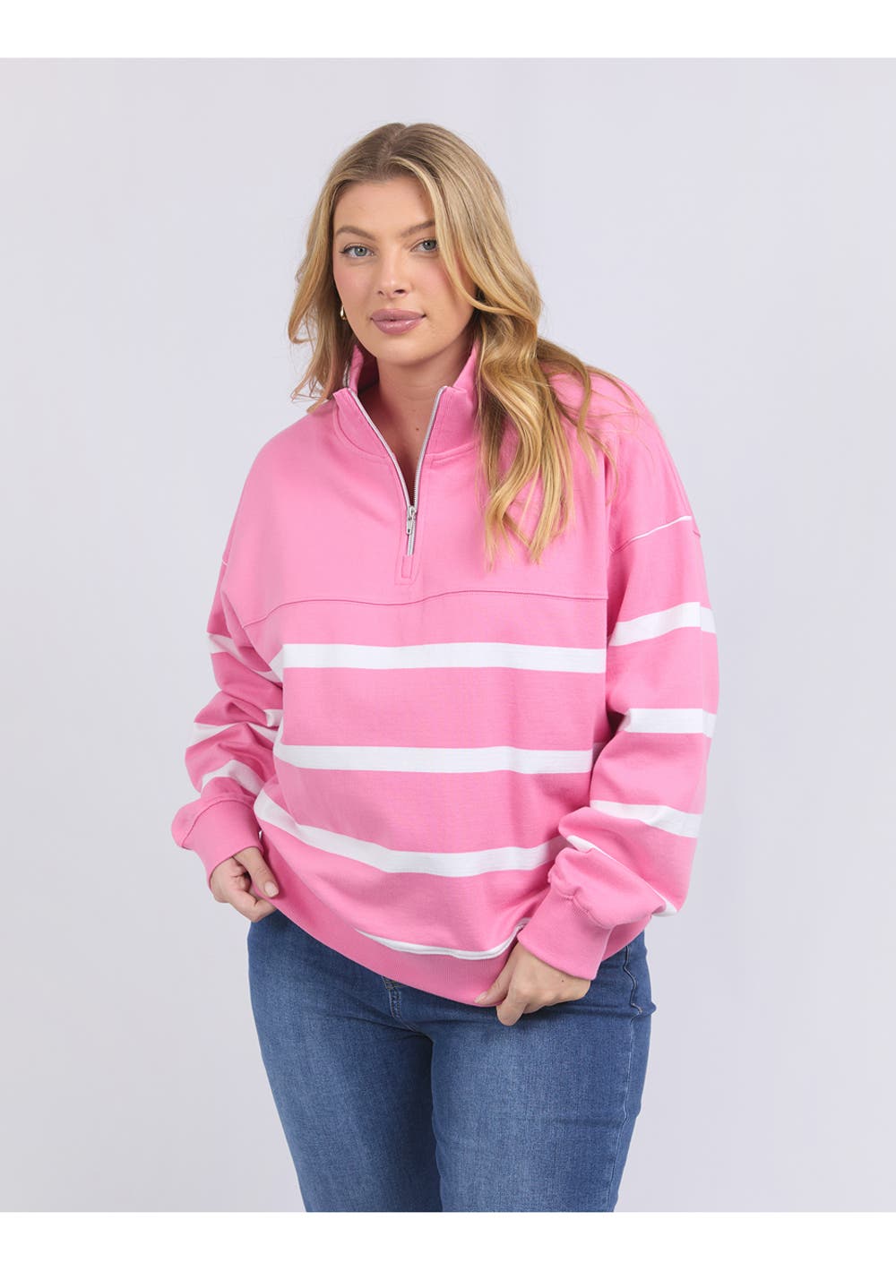 Elm - Lane Zip Crew - Pink/White Stripe