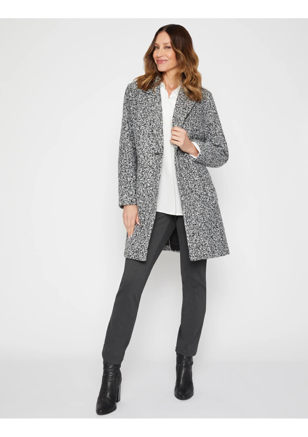 Winter Fashion Edit - Miller Long Sleeve Brushed One Button Coat - Charcoal