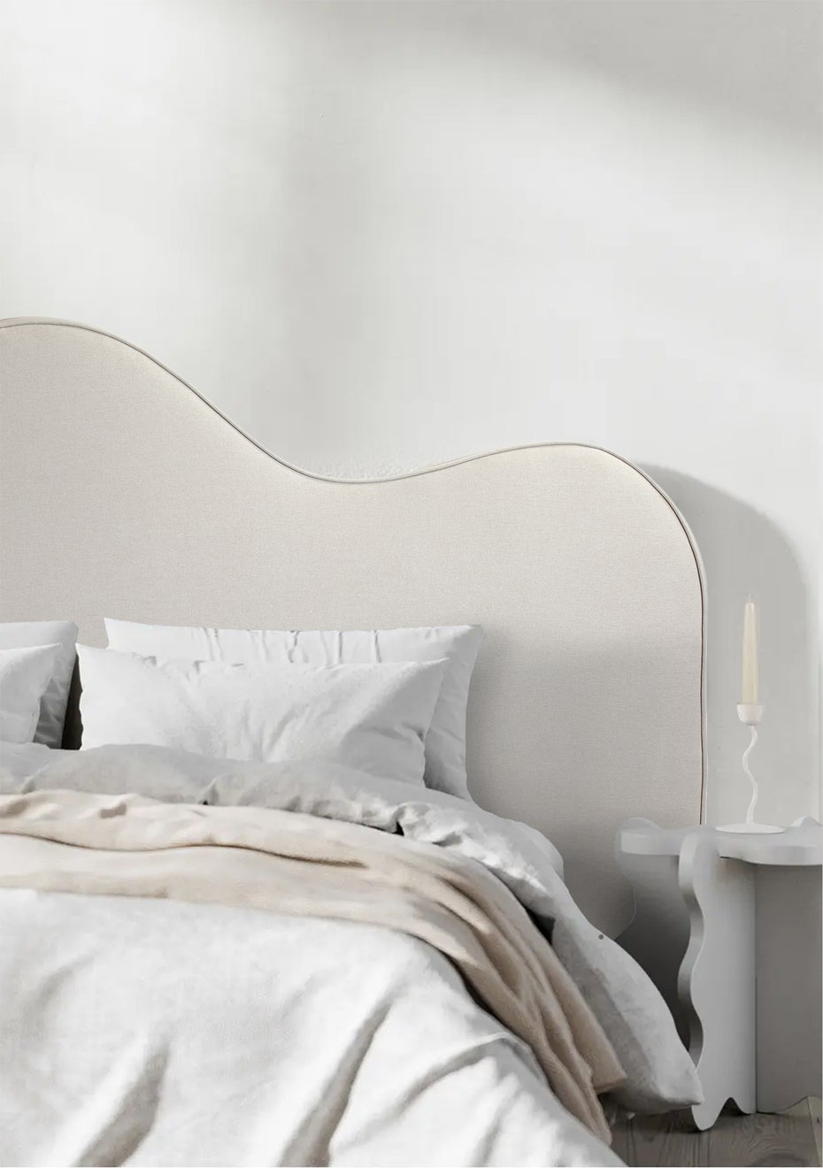 George Collective - Wave Piped Linen Look Headboard - Super King - Natural/Natural Piping