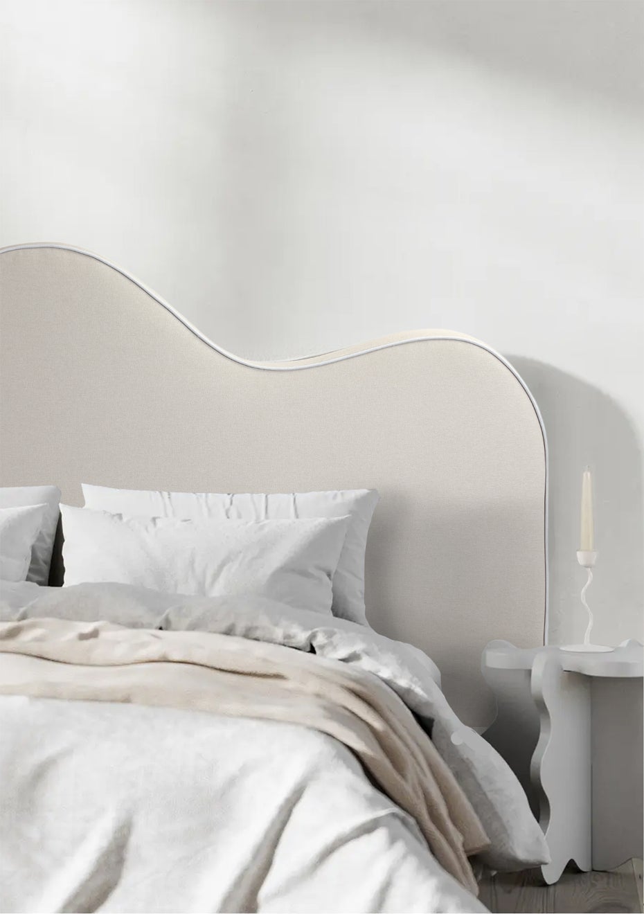 Our Wave headboard is the ultimate sculptural accent piece. Upholstered in textural velvet fabric, the asymmetrical curves are a nod to mid-century design. Pair back with our 100% European Flax Linen bedding for an on-trend look. Queen : Width 163cm x Higher curve 130cm, Lower curve 110cm x Depth 9cm Fabric Front: 100% Polyester Fabric Back: 100% Non-woven fabric Filling: High Density Foam Frame: MDF Assembly: Simply place in between your bed and the wall and secure by pushing your bed against the headboard - no bolts or screws required! Care Instructions: Protect from direct sunlight, heat and weather Spot clean only with damp cloth and air dry, do not rub Lightly brush or vacuum fabric regularly to maintain If further cleaning is required, use a mild non-coloured pure soap solution made from soap flakes mixed with warm water Note that fading may occur due to sunlight exposure. Professional cleaning recommended for persistent stains If not in use, store in a dry area. PLEASE NOTE Please be aware that the colours of the product may appear slightly different from online images due to various factors such as Studio lighting and editing processes. Furthermore, individual monitor settings may also impact the perception of colour. While we make every effort to accurately represent our products online, we cannot guarantee exact colour matching. Your understanding in this matter is greatly appreciated.