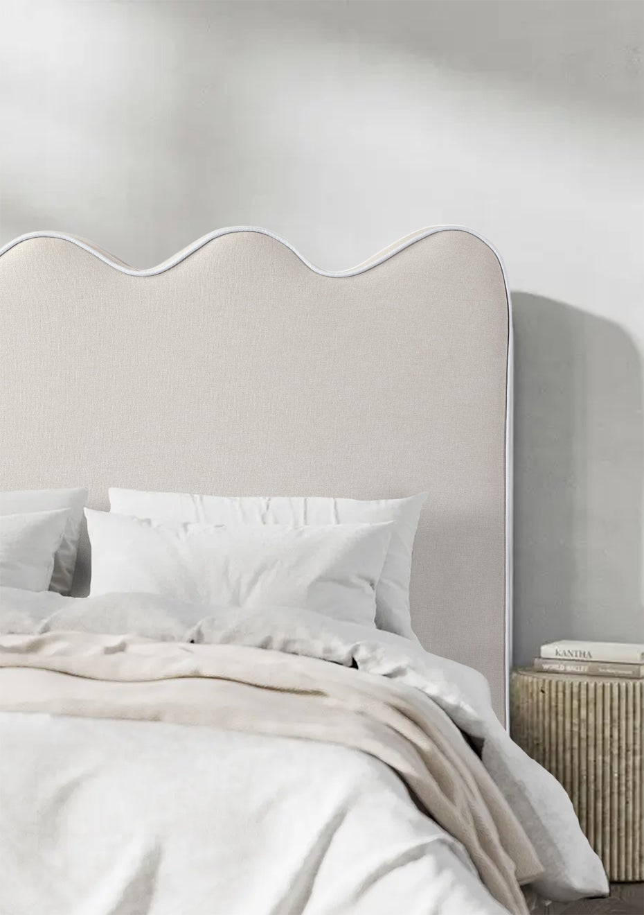 George Collective - Wavy Piped Linen Look Headboard - Queen - Natural/White