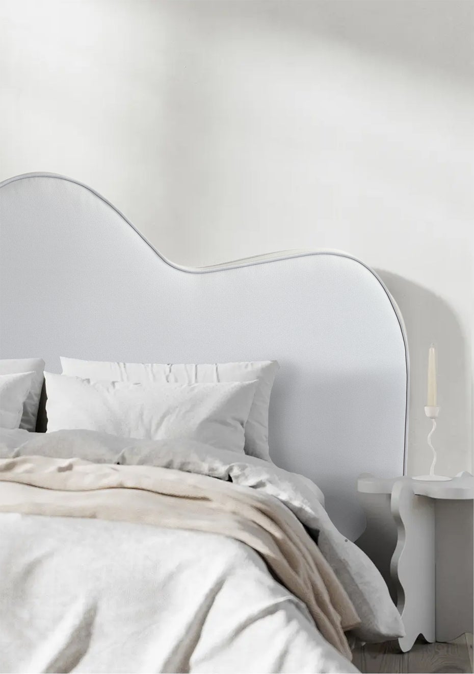 George Collective - Wave Piped Linen Look Headboard - Super King - White/White Piping