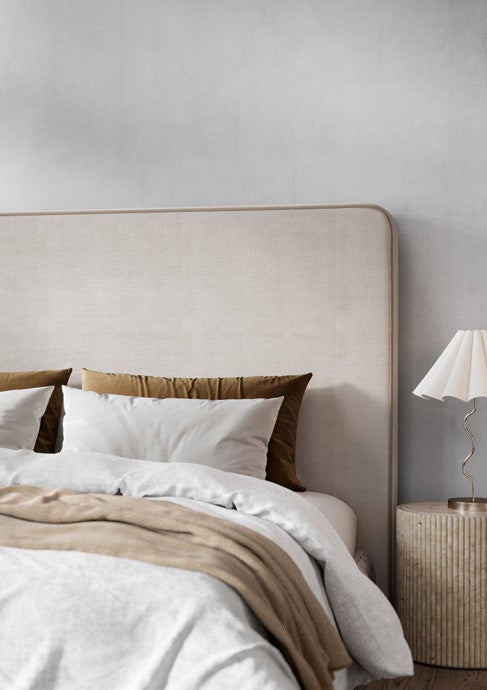 George Collective - Arc Piped Linen Look Headboard - King Single - Natural/Biscuit