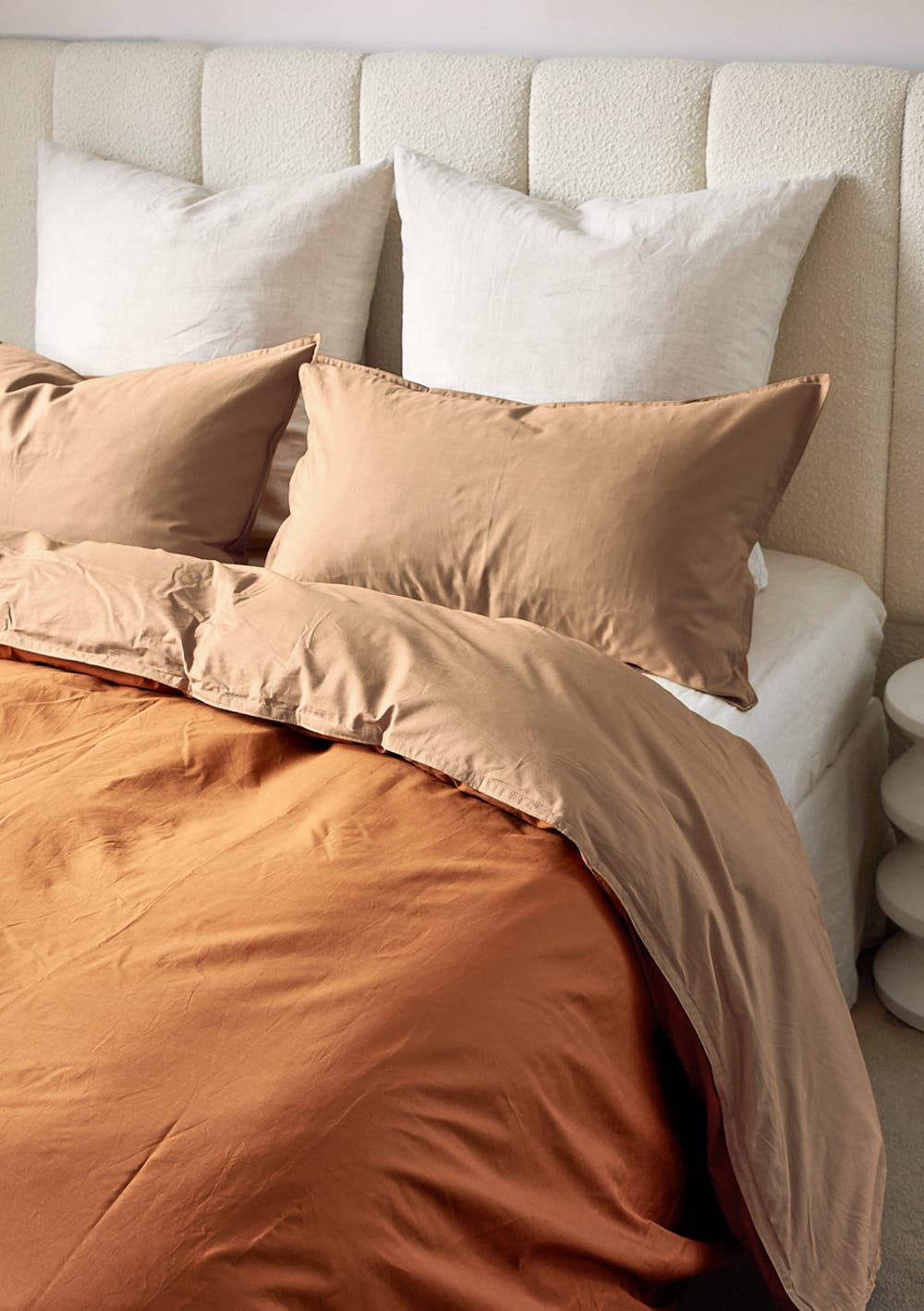 George Collective - Stonewashed Cotton Reversible Duvet Cover Set - Queen - Mocha/TobaccoPREORDER