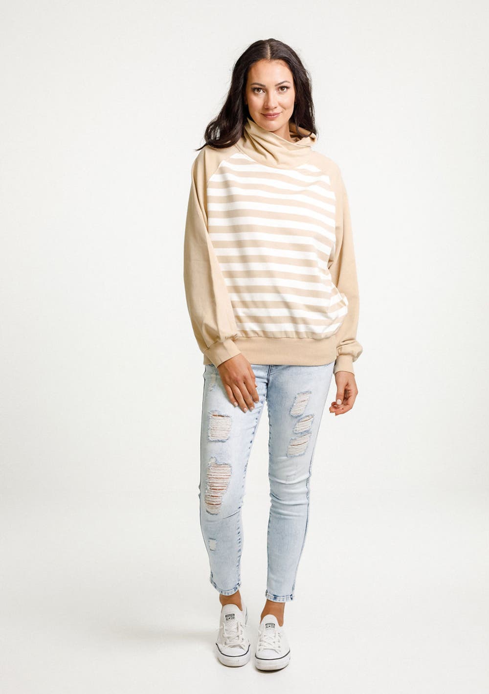 Homelee - Sienna Sweater - Coffee Cream Stripe