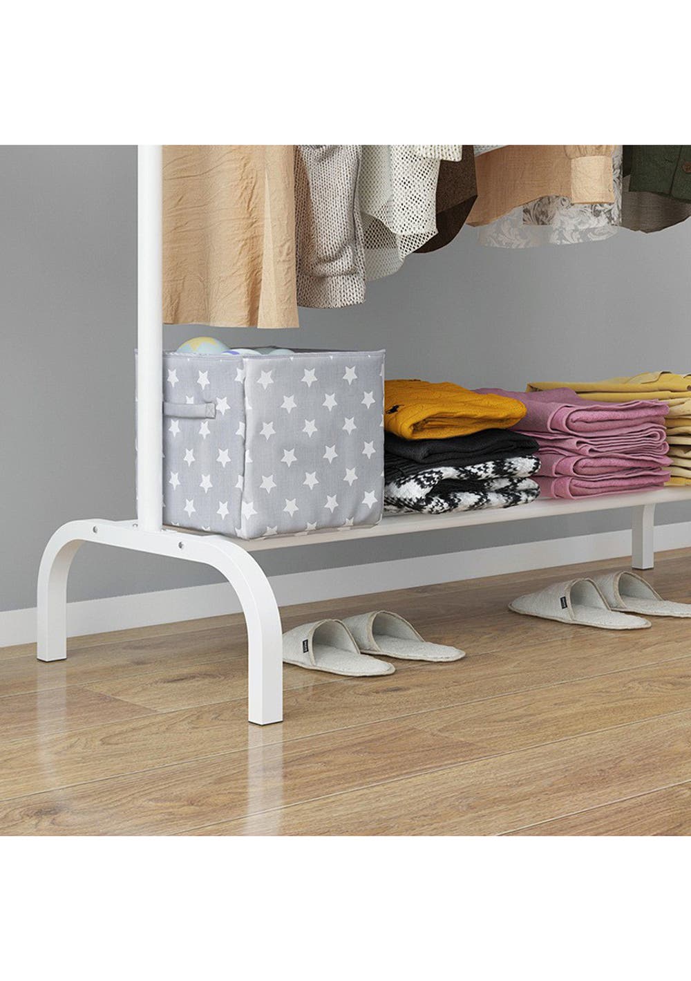 Features   Made of strong steel with external screw assembly ,can be hold a max load capacity of 20kg, it can hold all your garment at ease.  Hanging and showing more clothes on it with 150×45×152cm. No matter a variety of long and short tops, trousers, and even long skirts.  Unique tree stand coat hanger design, this is great for organize and create storage space in your laundry room, bedroom or student dormitory.  Clothes rack with one smooth rod and 7 side round-headed hooks for hanging clothes, jacket, umbrellas, hats, scarves, and handbags, 1 bottom shelf for storage your shoes or boxes.  Easy Assembling: Simple structure making this rack very easy to assemble with the instructions provided.  Package Include  1 x Metal 7 Hook Garment Rack Clothes Coat Stand  1 x Screw Set  1 x Manual Material: Steel Product dimensions (LWH): 150×45×152cm Weight: 3.5 kg