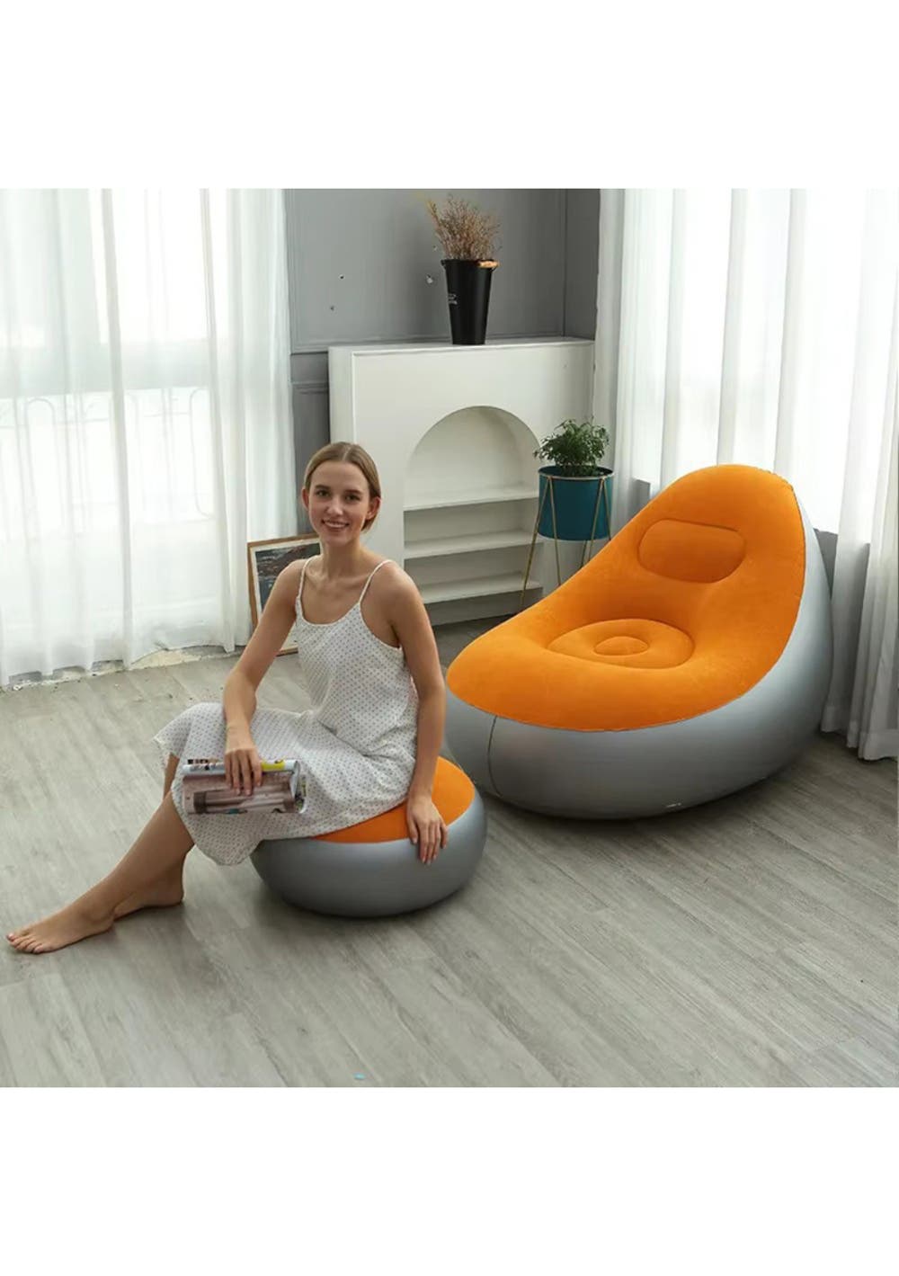 Inflatable Leisure Sofa Chair & Footstoo -Orange