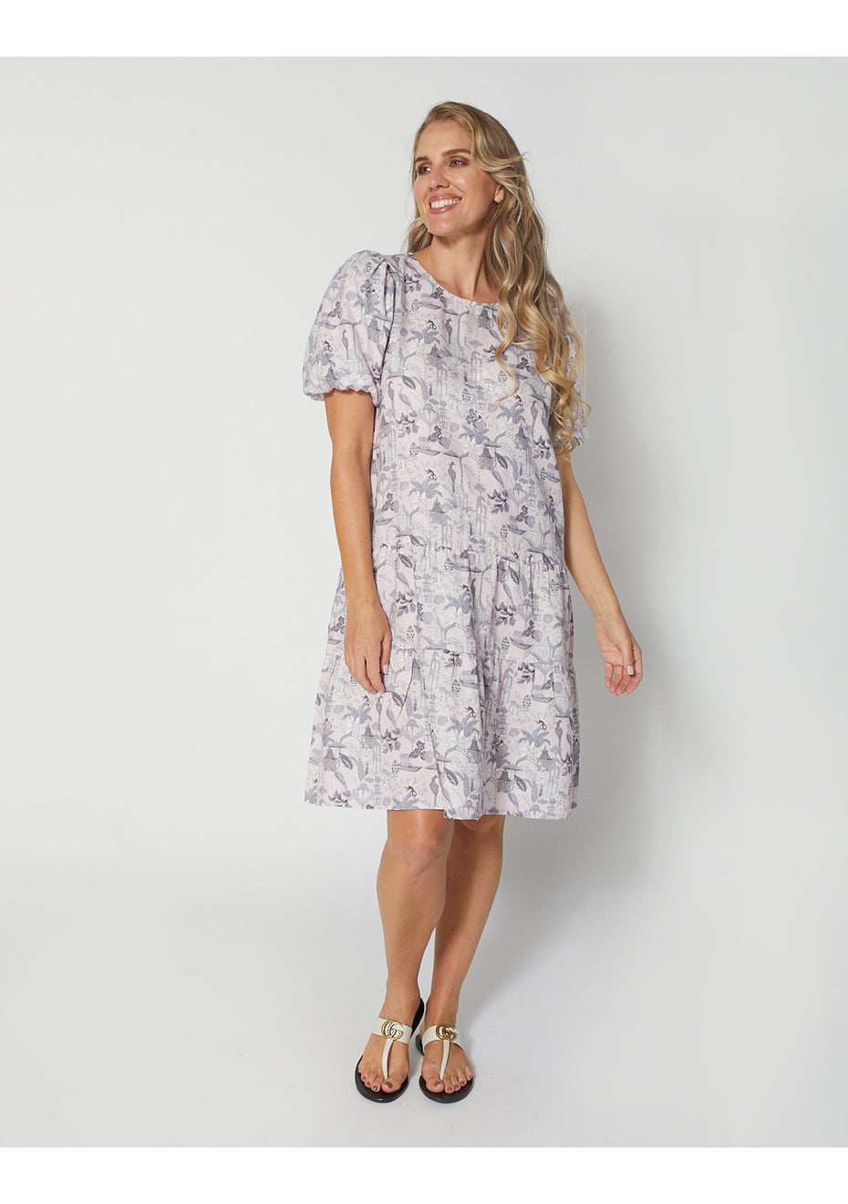 Crew neck tiered above knee dress with gathered shoulder and elasticated short sleeve. Onceit sources product globally. Onceit displays a strikethrough price based on the Manufacturer's Recommended Selling Price (MRSP) or recommended retail price (RRP) to show a price comparison. The discount percentage reflects the difference between Onceit's selling price and the MRSP or RRP. Suppliers provide these prices as either the official price set by the retailer or brand, which may vary between different retailers and regions or the price they recommend for sale. While we require suppliers to provide evidence of an RRP or MRSP, the product may not have been sold at that price before or recently in New Zealand. NZD RRP or MRSP is provided by the supplier or calculated by using the market spot rate at time of listing, we use this as the strikethrough price and calculate the discount percentage based on the difference between this price and Onceit’s selling price.