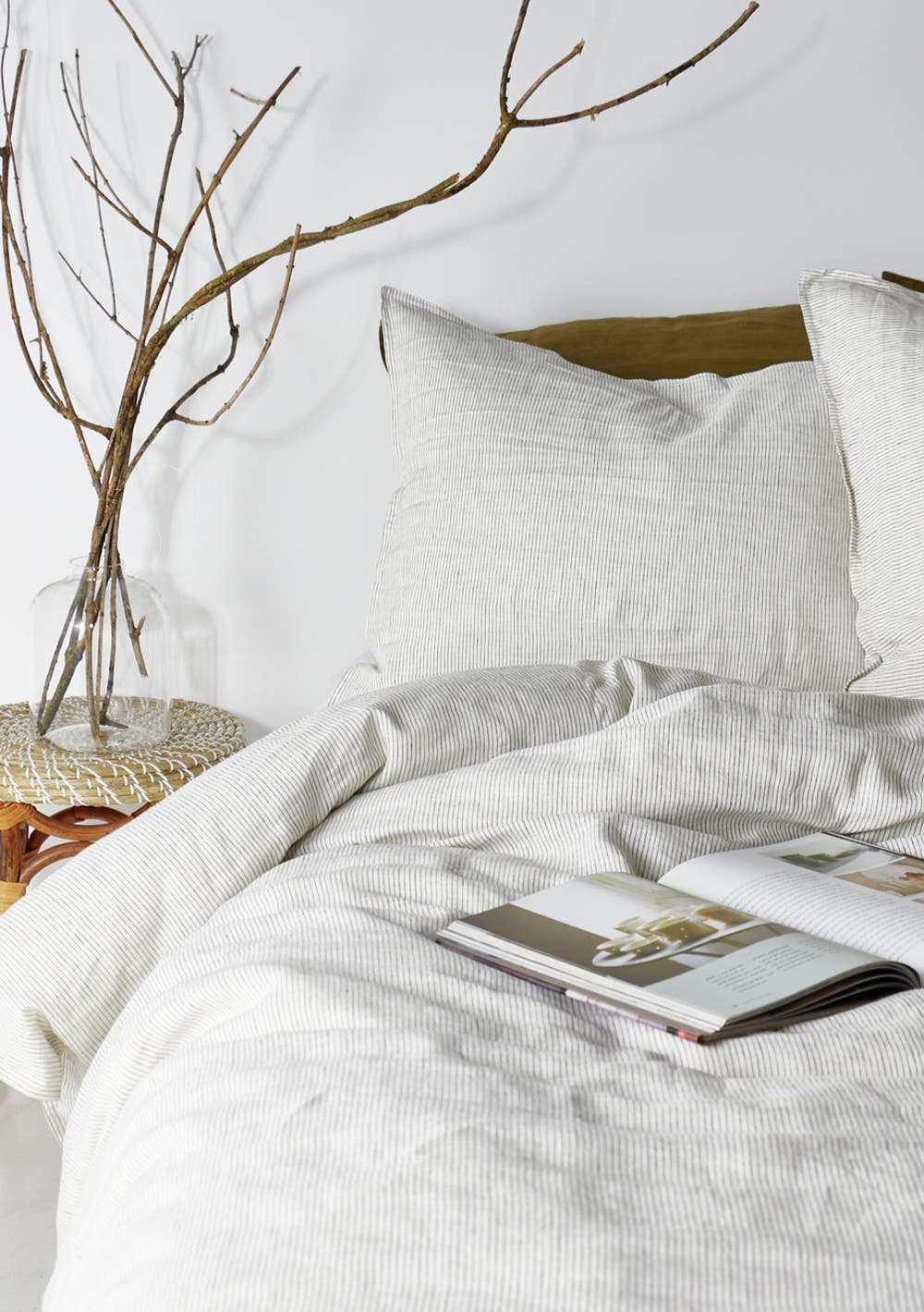 George Collective - 100% European Flax Linen Duvet Cover Set - Queen - Grey Stripe