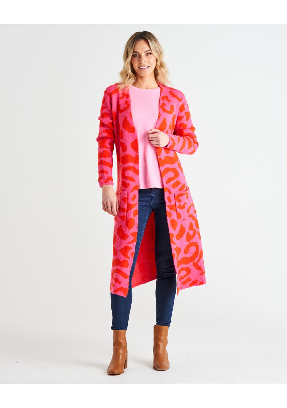 Betty Basics - Swift Cardigan - Pink/Red Cheetah Print