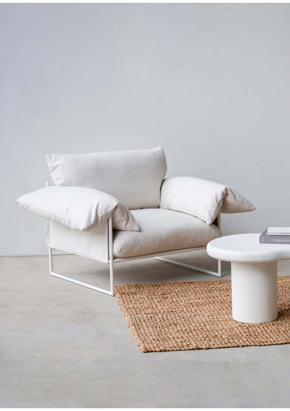 Designed Exclusively for Onceit, our George Collective brand is a contemporary and premium range for the home. Make a style statement with our Frame Occasional chair. Featuring luxury linen blend fabric and an elegant white frame. The pitched seat and cushioned seat sits deep and soft for indulgent comfort. A little bit '70s, a lot today, this occasional chair is the winning ticket that adds a Modernist vibe to your pad or swanks up your Mid-Century abode. Perfect on its own, or pair it up. Material: Frame made of durable metal Fabric cover: 90% Polyester 10% Linen Professional Clean only Dimensions: W96x D87 x H80cm Product weight: 26kg