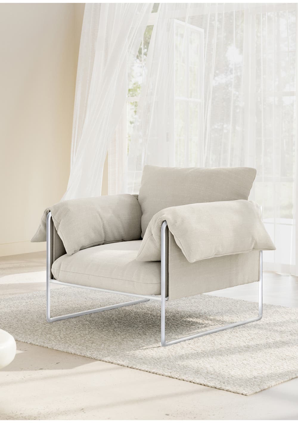 Designed Exclusively for Onceit, our George Collective brand is a contemporary and premium range for the home. Make a style statement with our Frame Occasional chair. Featuring luxury linen blend fabric and an elegant white frame. The pitched seat and cushioned seat sits deep and soft for indulgent comfort. A little bit '70s, a lot today, this occasional chair is the winning ticket that adds a Modernist vibe to your pad or swanks up your Mid-Century abode. Perfect on its own, or pair it up. Material: Frame made of durable metal Fabric cover: 58% Polyester, 26% Viscose & 16% Linen (Natural WDS3104-201) Professional Clean only Dimensions: W96x D87 x H80cm Product weight: 26kg