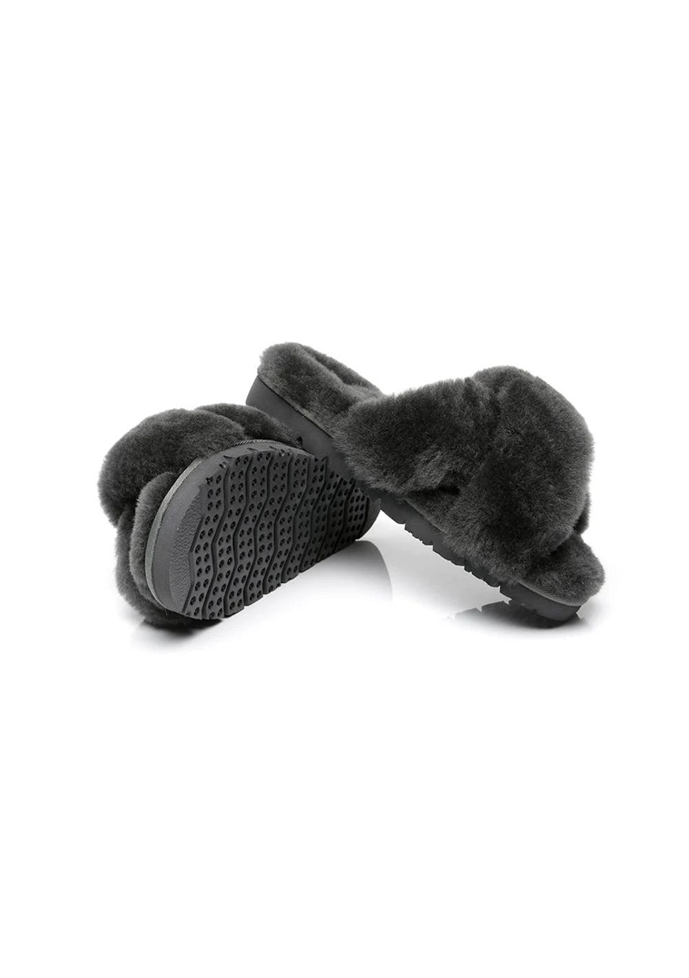 Ugg Australian Shepherd - Leanna Women Fluffy Crossover Slides - Dark GreyPREORDER