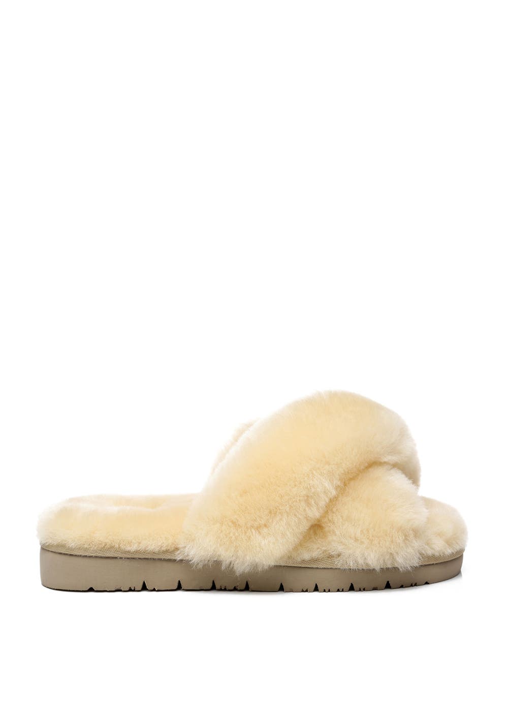 UGG Australian Shepherd - Leanna Women Fluffy Crossover Slides - CreamPREORDER