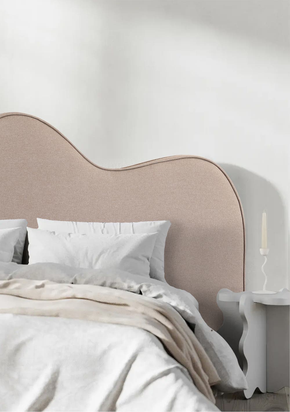 Our Wave headboard is the ultimate sculptural accent piece. Upholstered in textural velvet fabric, the asymmetrical curves are a nod to mid-century design.