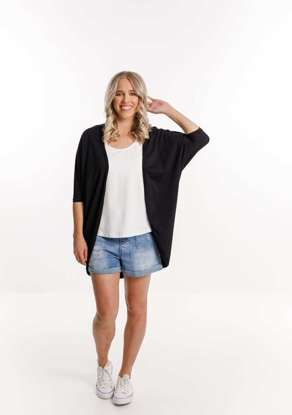 Looking for that perfect trans seasonal layer? Our Home-lee Batwing Cardi's are well known to be the perfect wardrobe staple, a classic shape that is easy to throw on over any outfit, finishing your look with either casual ease, or dressed up and ready to hit the town on a night out! This Long Batwing Cardi in our bespoke Checker Print features long sleeves with a fitted forearm and a drop at the back hem - it is are open front and have no closures. Made from a winter weight (260gsm) Cotton/Elastane it provides the perfect amount of stretch and recovery, drape and ultimate comfort!