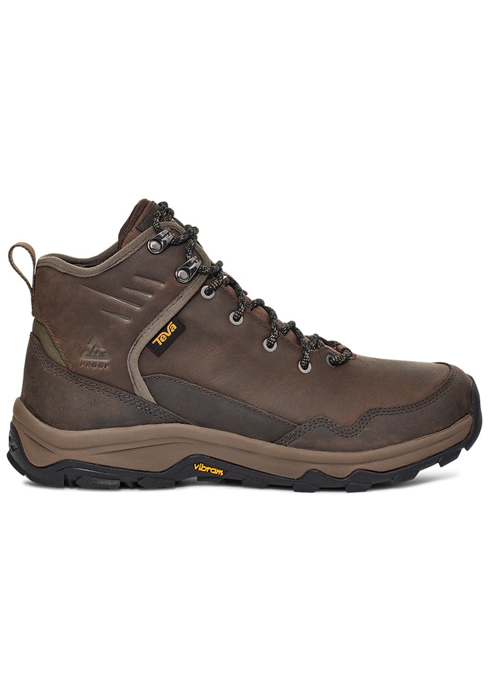 A casual hiker that easily transitions from sidewalk to switchback, the Riva Mid features a waterproof leather upper and TevaRAPID PROOF bootie for ultimate moisture management. Built through the lens of a hiker, yet designed for everyday wear, this versatile silhouette is grounded in a responsive footbed that cushions with every step. TevaRAPID PROOF bootie construction employs a breathable, waterproof membrane and waterproof materials for the ultimate protection from deep puddles, heavy rain, and snow. If present, zippers and tongues are gusseted and treated with water-repellent coatings 100% recycled polyester waffle knit lining Lace-up entry allows you to customise your fit A responsive PU footbed cushions your foot and puts a spring in your step Moulded EVA midsole, Nylon shank stabilises and supports your foot on uneven terrain Vibram® outsole rubber outsole stands up to the demands of rugged terrain Treated with Life Naturals, a responsibly sourced peppermint-based antimicrobial that fights the growth of odour causing bacteria Sustainability Initiative(s): Leather sourced from tanneries certified by Leather Working Group, whose mission is to promote sustainable and appropriate environmental business practices within the leather industry Best for: multi-day hikes Half Pair Weight: 563g (Size US9)