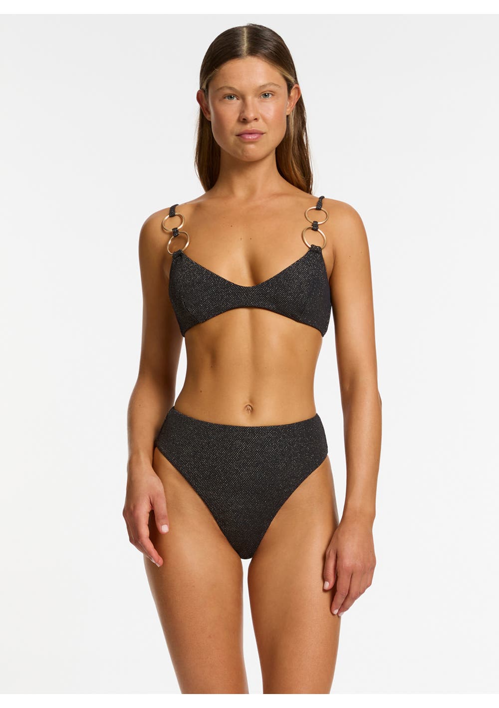 Textured fabric with metallic fibres Best suited to an A ¿ C cup. Removable Cups For Shape And Support Side Boning For Shape Definition Trim detail 90% Nylon 5% Metal Fibres 5% Elastane