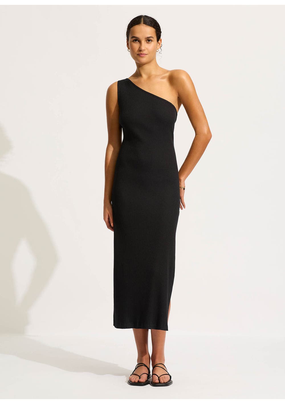 Seafolly - Beachedit Jersey Rib One Shoulder Dress - Black