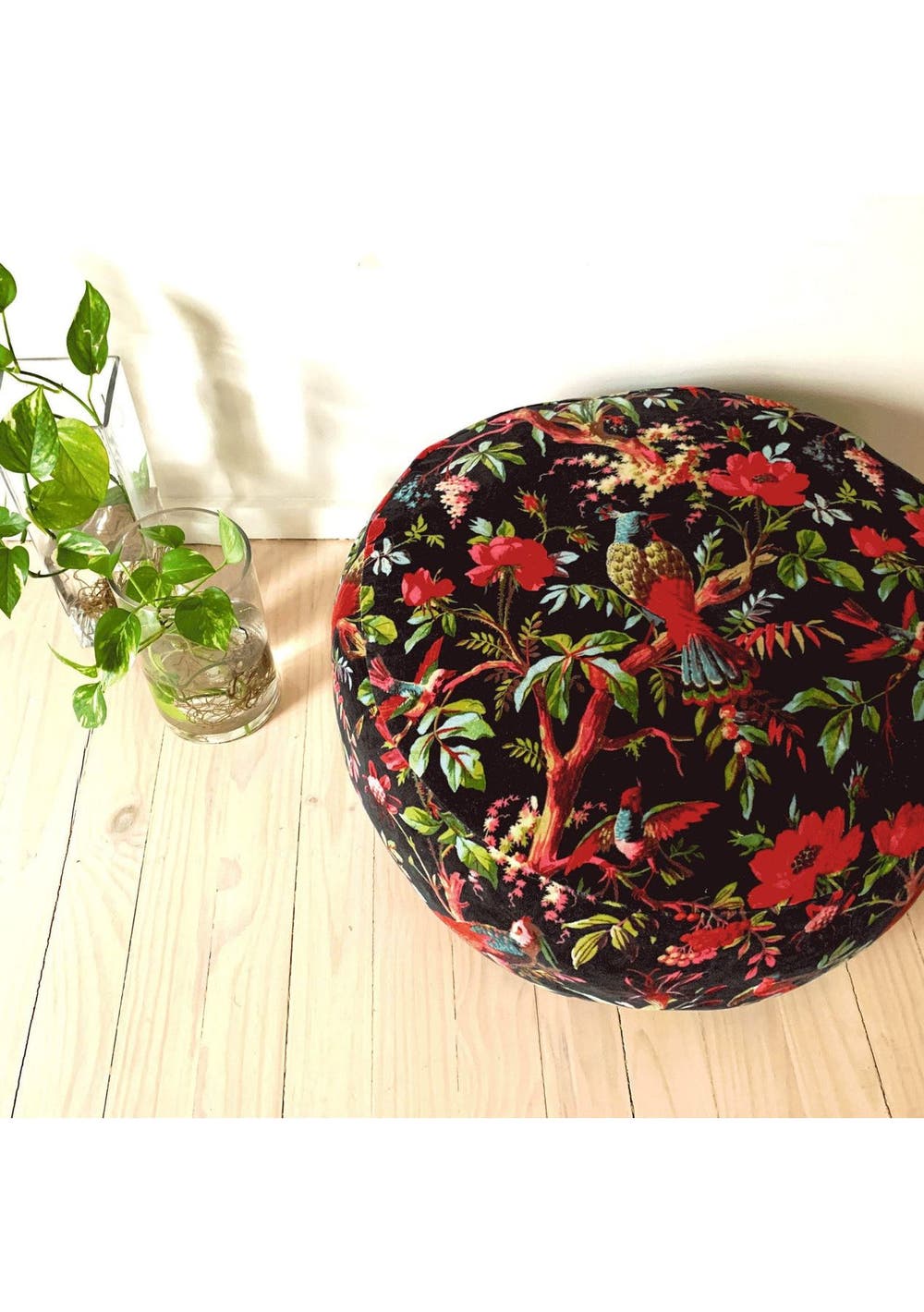 Velvet Patchwork Cushion Cover Ottoman Pouffe - Black Jade