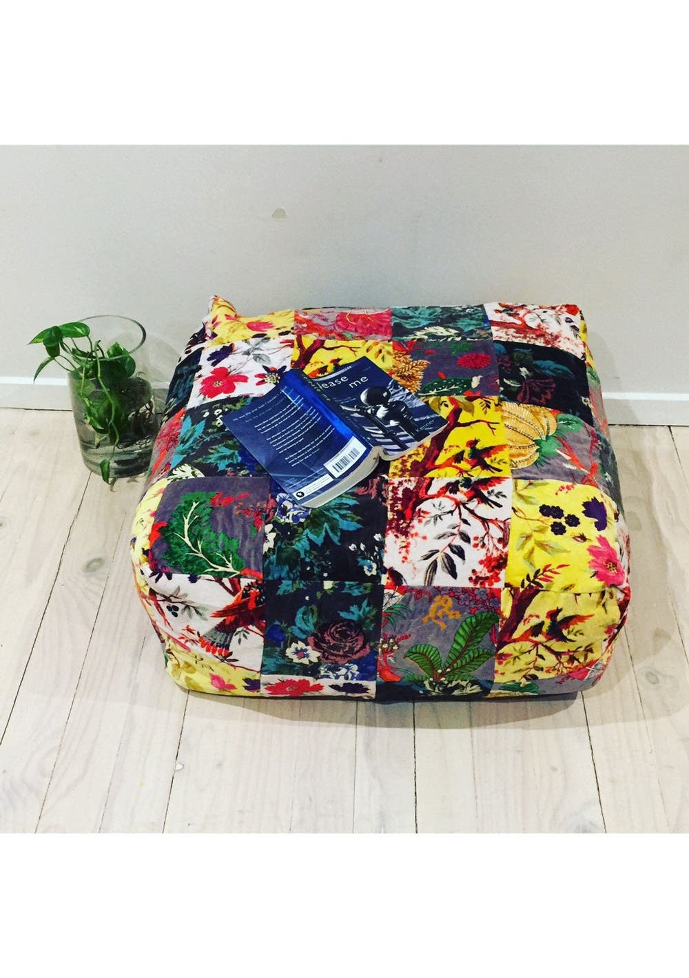 Velvet Patchwork Cushion Cover Ottoman Pouffe - Colourful Lagoon