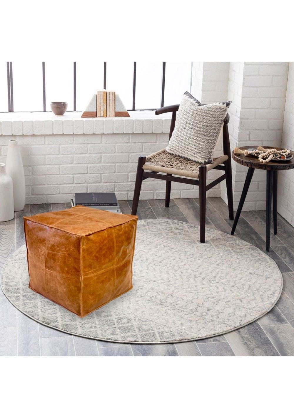 Leather Tan Moroccan Ottoman - Artisan Elegance