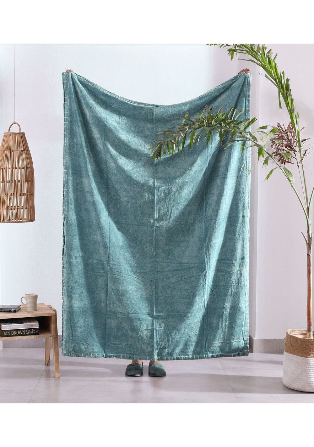 Luxury Rustic Velvet Cotton Throw Blanket - Boho Azure