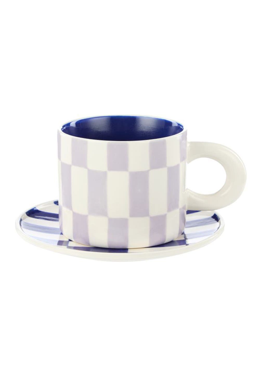 Emporium - Check Mug & Plate Set - Lilac/Navy