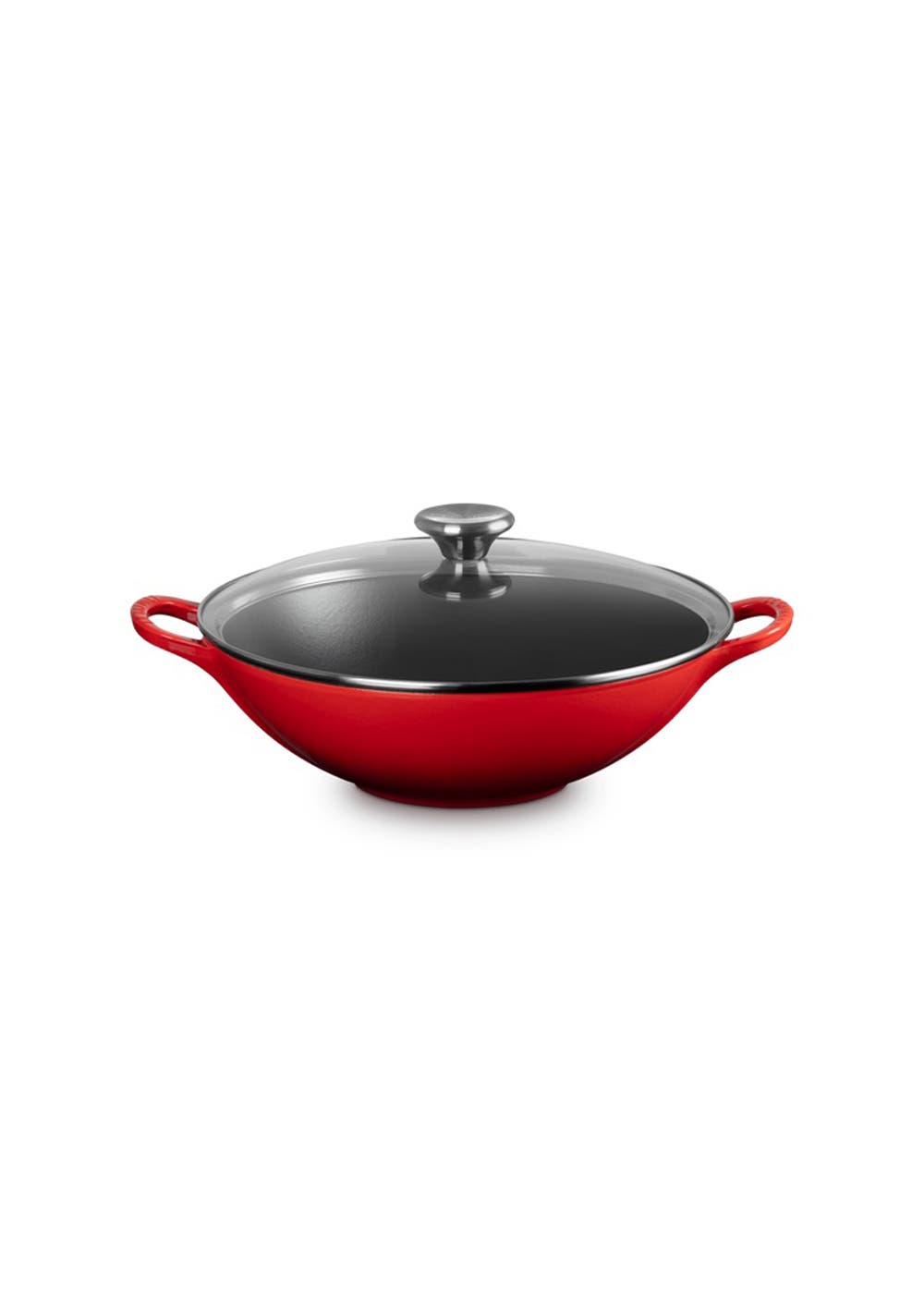 Le Creuset - Wok with Glass Lid 32 Cerise