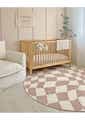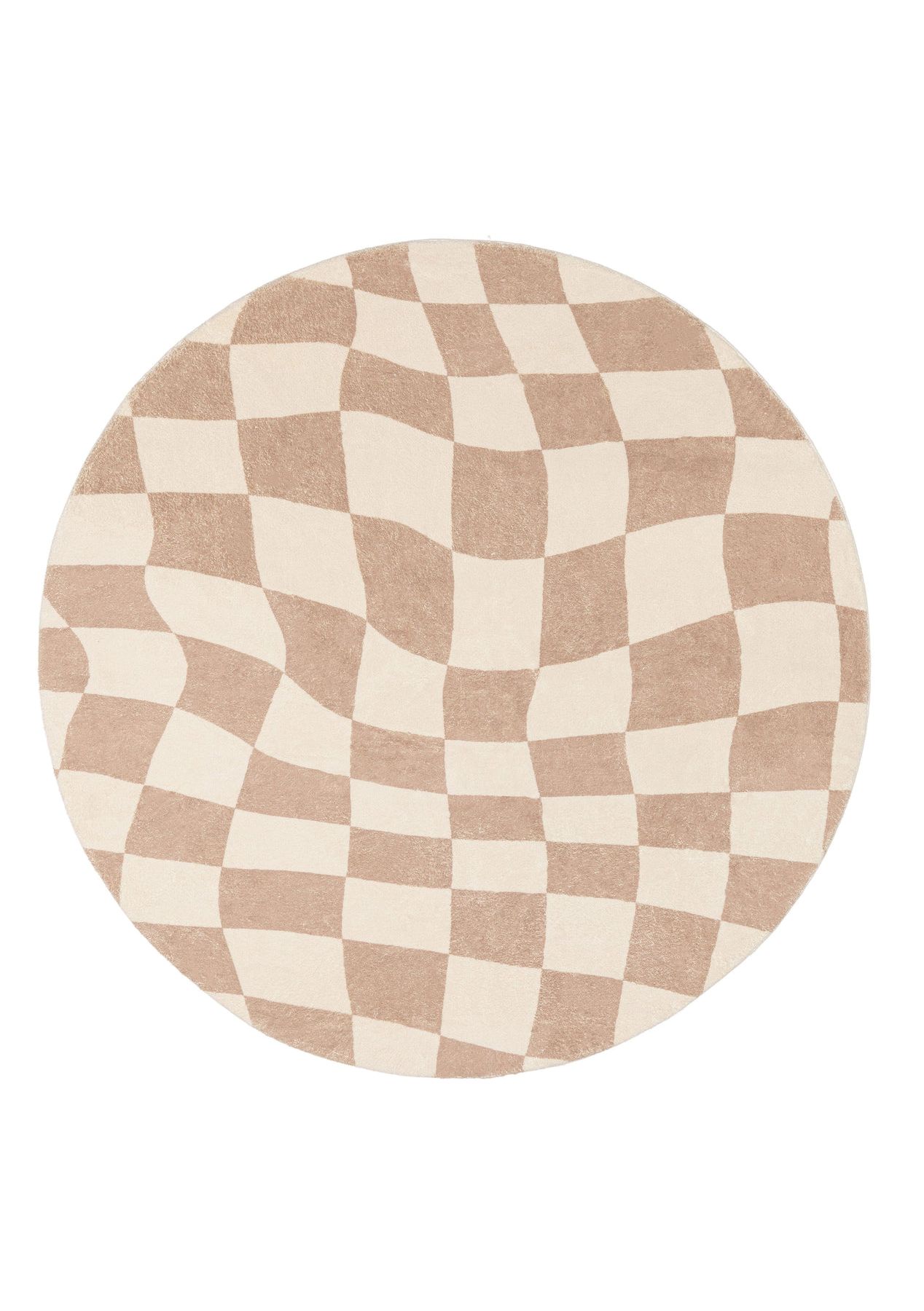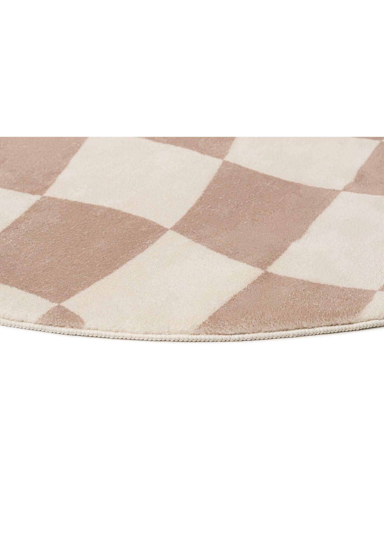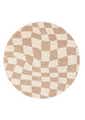 Logan Beige and Ivory Checkered Washable Round Rug