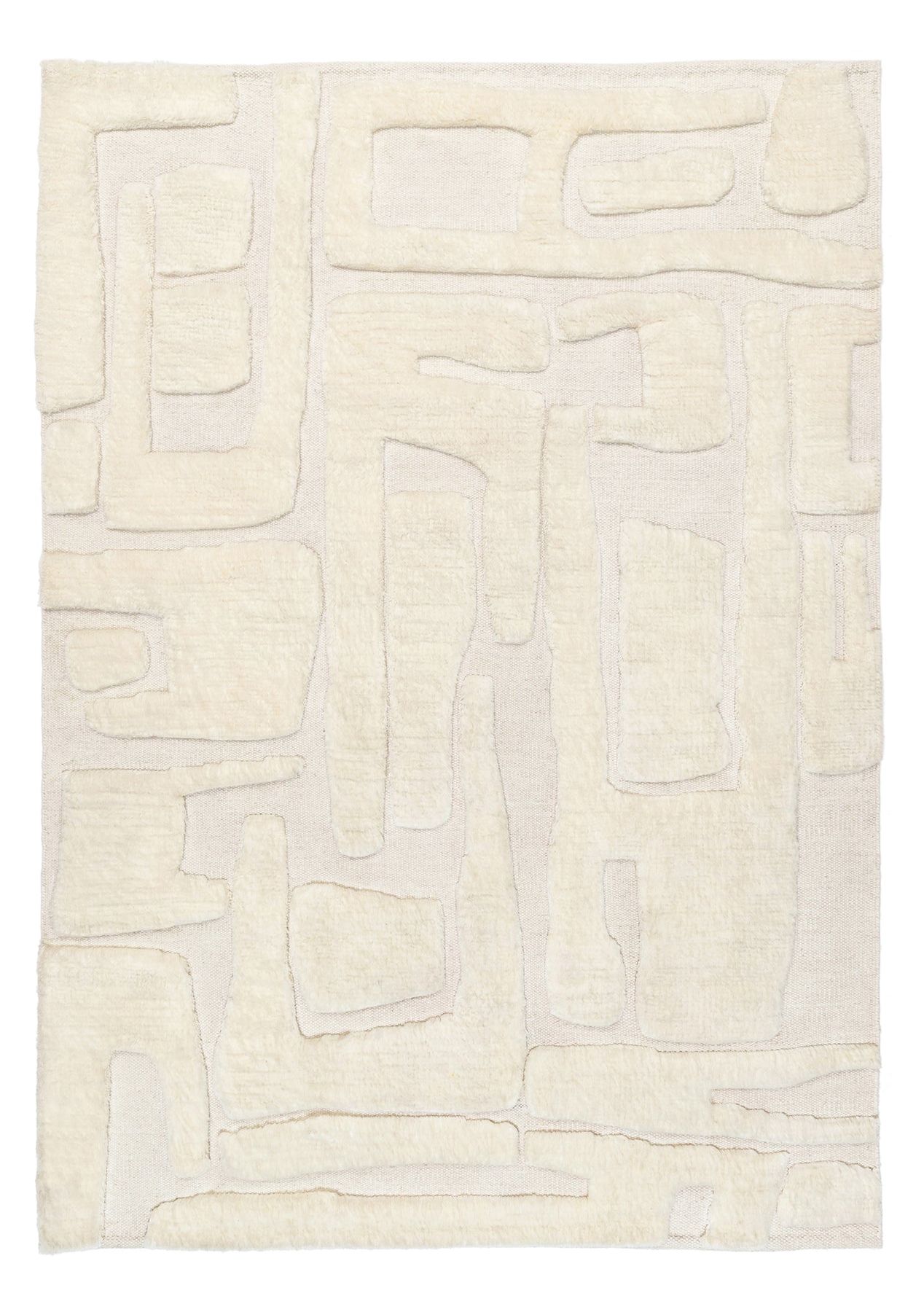 Rolini is a gorgeous tufted ivory wool rug with a contemporary heiroglyph-inspired pattern.A labour of love, this rug was handwoven in India into a 18mm high low shag pile of 90% wool and 10% cotton fibres.*This product is handmade by skilled artisans and may encounter variations in pattern and color from the images shown. This is entirely normal and is part of the production process.**Natural shedding can be expected and this is normal. New wool rugs will shed lightly in the first few months and will be low-shed after this time. The shedding will lessen after the first 3-6 months depending on the level of use.***An underlay is highly recommended for indoor use.